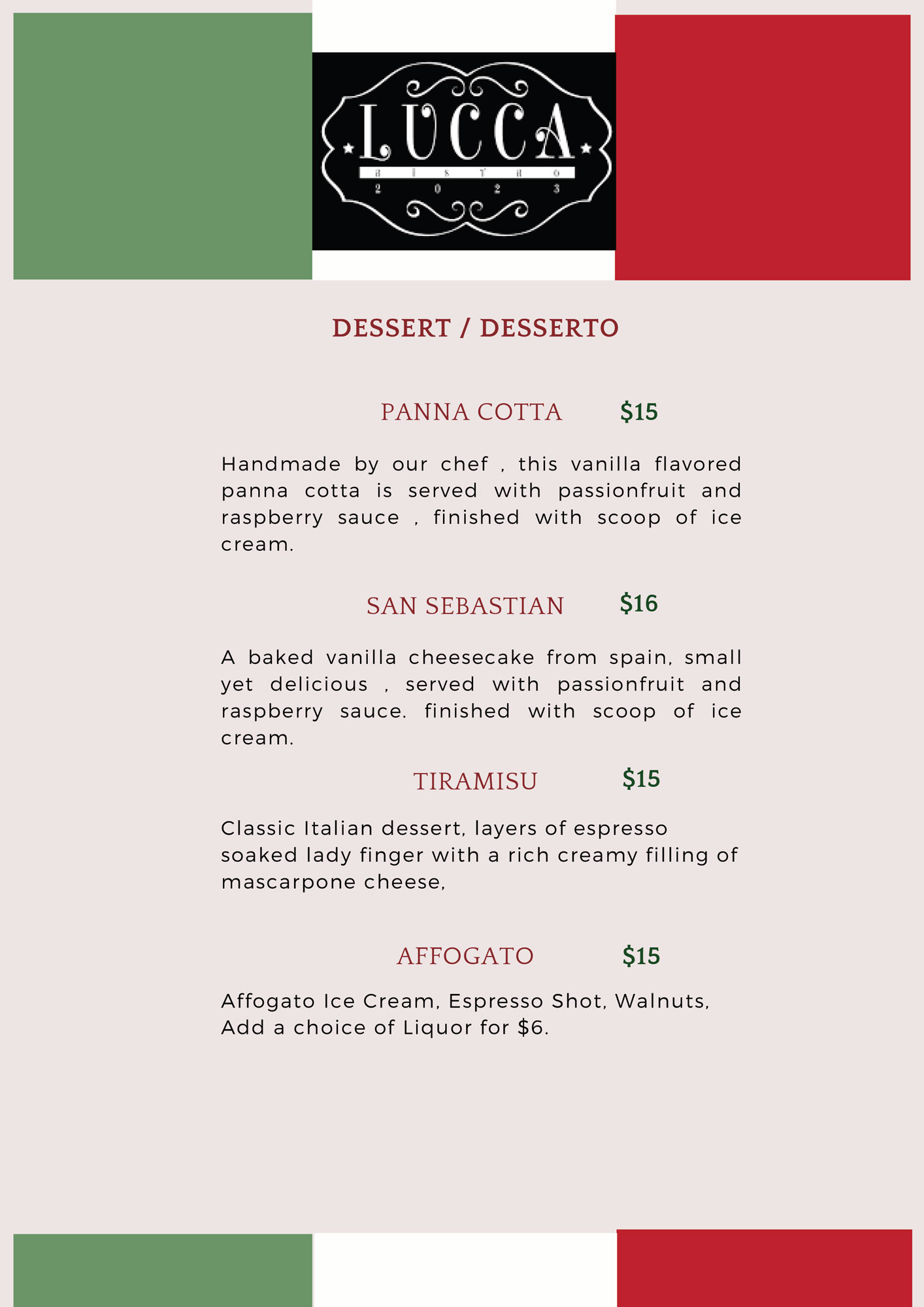 Our skilled chefs at Lucca bring passion, precision, and years of experience to every dish, creating unforgettable flavors with authentic techniques.